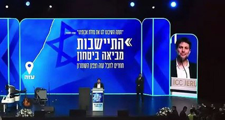 The event was dedicated to the “recolonization of Gaza.” Two decades after Israel left that land, the statements being presented from the podium were that without settlements on the ground, there “would be no security inside Israel.” To rousing cheers, Smotrich delivered the statement, “With God’s help, the eternal people will win.”